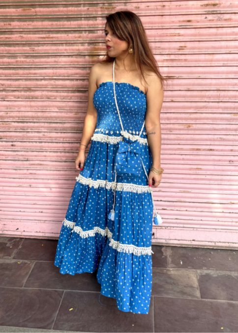 Blue Bandhani Smocked Top