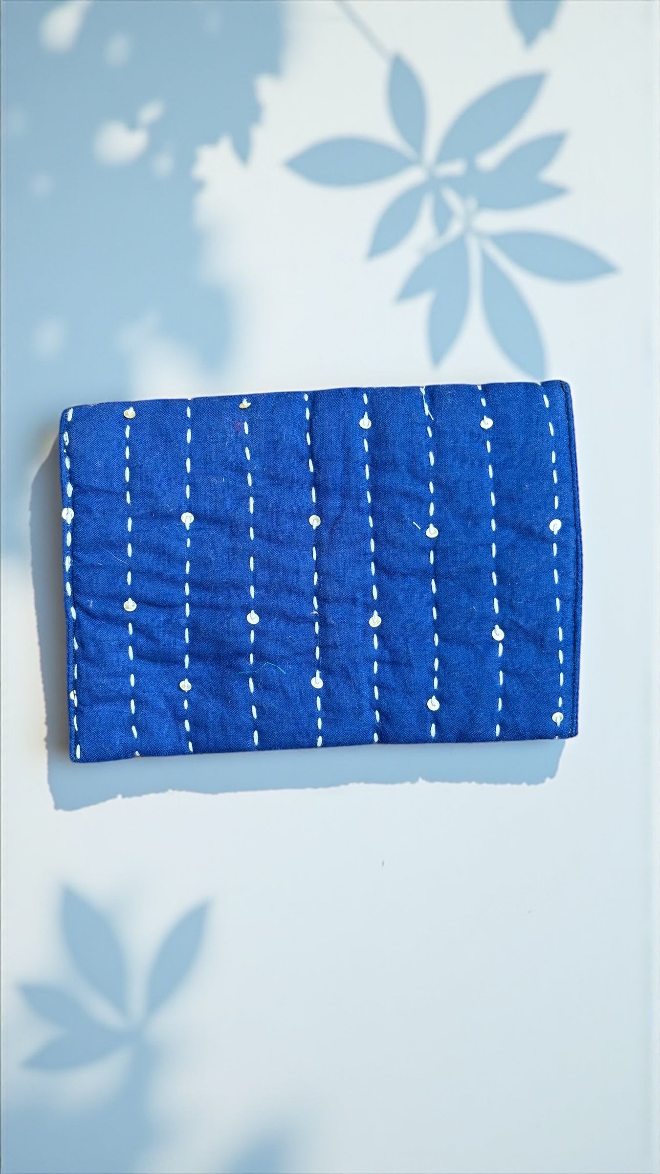 - Pouch features running Kantha stitches and soft cotton lining
