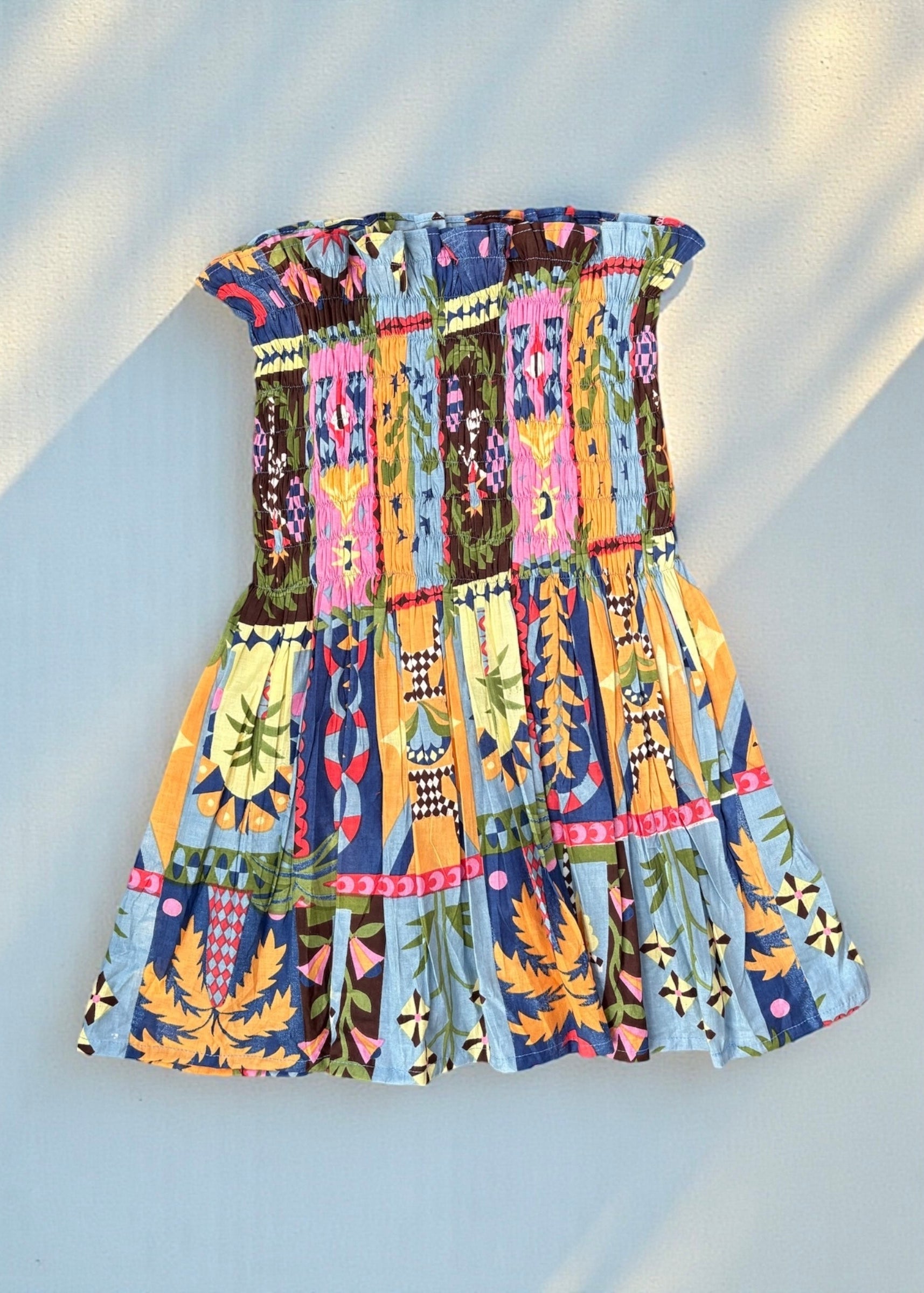 Crafted from breathable cotton, this top features a fully smocked upper and a flowy hemline for an airy, adaptable fit. The multicolour boho print delivers a handcrafted feel, amplifying both everyday looks and vacation outfits.