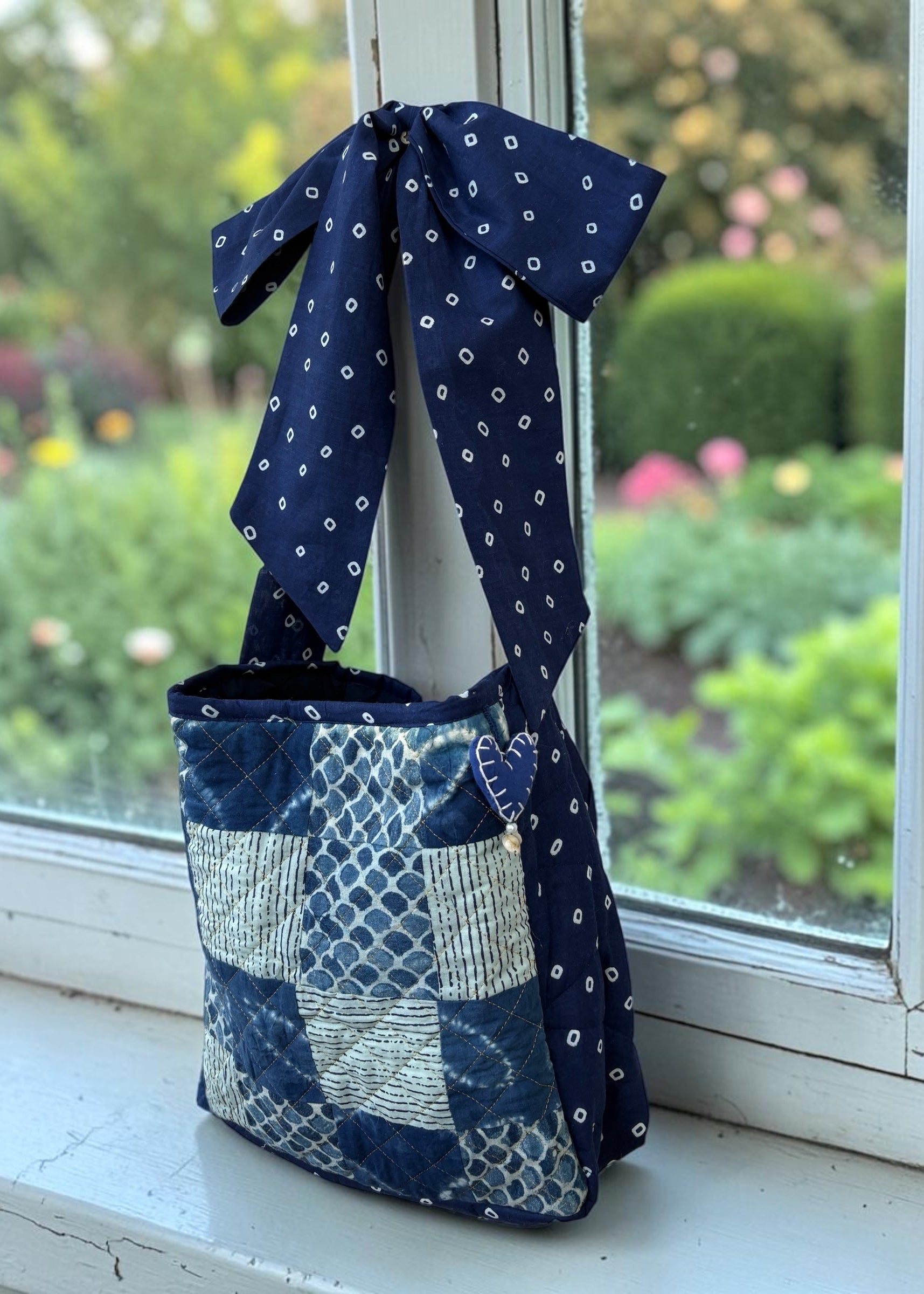 A statement in quiet luxury, the Indigo Patchwork Kantha Sling Tote blends heritage craft with everyday functionality. Handcrafted using layered cotton fabrics, each panel tells its own story through traditional block prints and intricate kantha quilting.